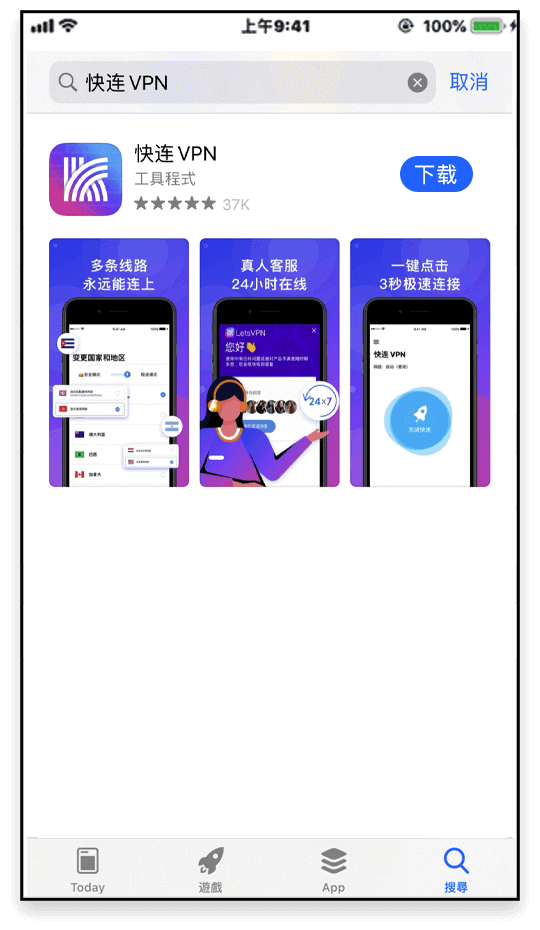 此时您可以点击下方按钮直接下载快连 VPN,或在商店中自行搜索 <快连 VPN> 进行下载;